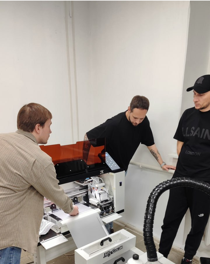 В рамках обучения по DTF вы получите уникальную возможность лично протестировать 5 разных моделей профессиональных принтеров и расходных материалов, задать вопросы опытным инженерам и освоить настройку оборудования на практике — навыки, которые невозможно получить на онлайн-курсах.